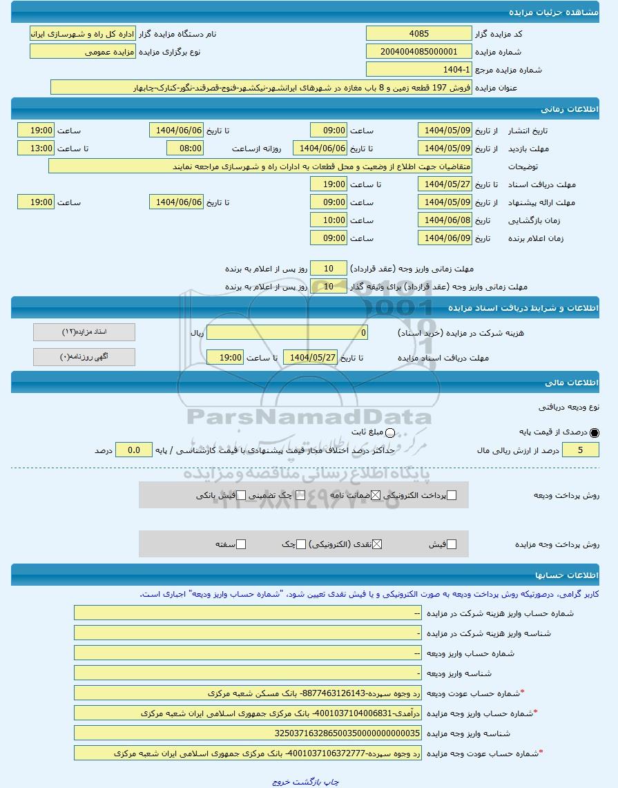 شماره مال2104004085000019نوع برگزاری مزایده مزایده عمومی
