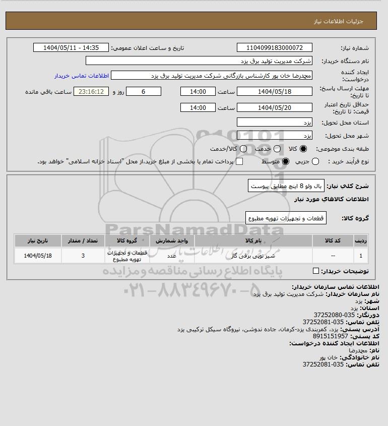 تلفن:5- 88349670 (021) فکس: 88349673 (021) Website: www.ParsNamadData.com E-mail: Info@ParsNamadData.com استعلام بال ولو 8 اینچ مطابق پیوست