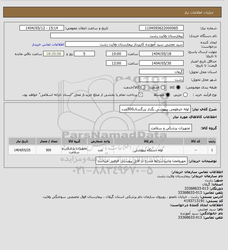 تلفن:5- 88349670 (021) فکس: 88349673 (021) Website: www.ParsNamadData.com E-mail: Info@ParsNamadData.com استعلام لوله خرطومی بیهوشی بگدار بزرگسال500عدد
