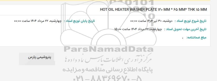 تلفن:5- 88349670 (021) فکس: 88349673 (021) Website: www.ParsNamadData.com E-mail: Info@ParsNamadData.com استعلام HOT OIL HEATER WASHER PLATE 120 MM* 65 MM* THK 15 MM