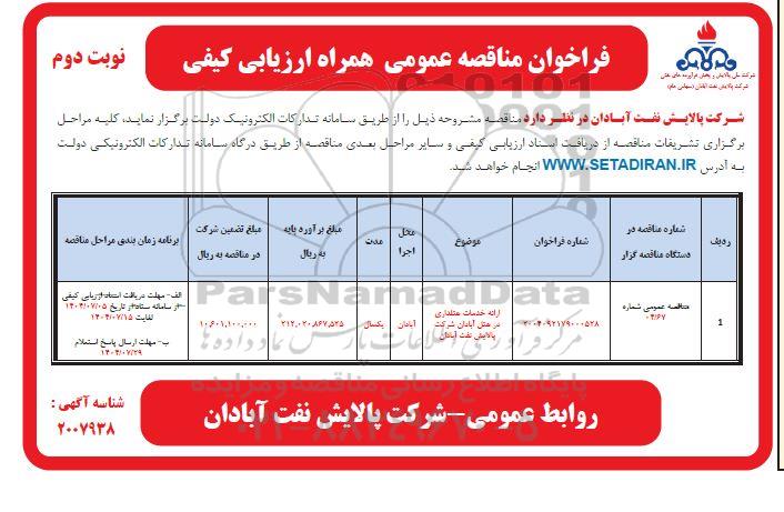 تلفن:5- 88349670 (021) فکس: 88349673 (021) Website: www.ParsNamadData.com E-mail: Info@ParsNamadData.com مناقصه عمومی ارائه خدمات هتلداری در هتل ...- نوبت دوم