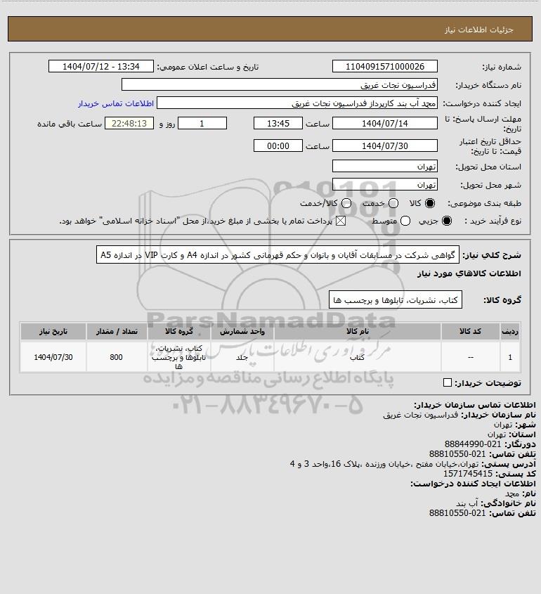 تلفن:5- 88349670 (021) فکس: 88349673 (021) Website: www.ParsNamadData.com E-mail: Info@ParsNamadData.com استعلام گواهی شرکت در مسابقات آقایان و بانوان و حکم قهرمانی کشور در اندازه A4 و کارت VIP در اندازه A5