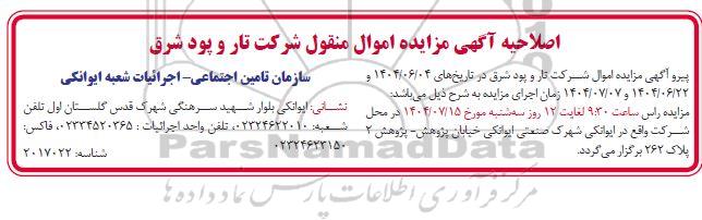 تلفن:5- 88349670 (021) فکس: 88349673 (021) Website: www.ParsNamadData.com E-mail: Info@ParsNamadData.com اصلاحیه آگهی مزایده یک دستگاه اتوکلاو....