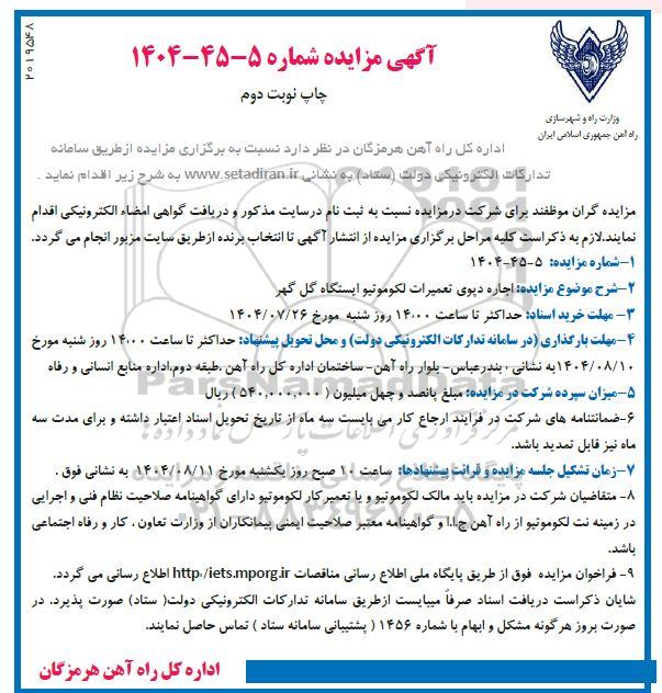 آگهی مزایده شماره 5-45-1404 نوبت دوم