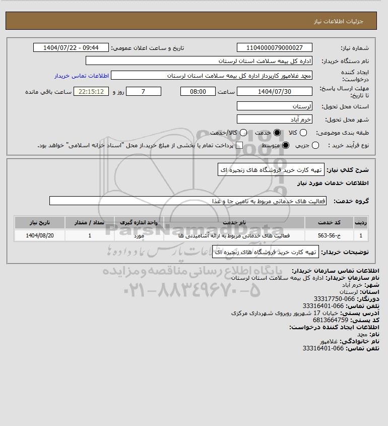 تلفن:5- 88349670 (021) فکس: 88349673 (021) Website: www.ParsNamadData.com E-mail: Info@ParsNamadData.com استعلام تهیه کارت خرید فروشگاه های زنجیره ای