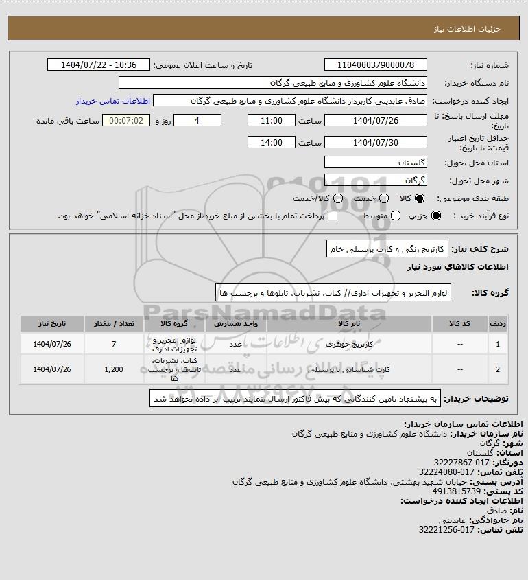 تلفن:5- 88349670 (021) فکس: 88349673 (021) Website: www.ParsNamadData.com E-mail: Info@ParsNamadData.com استعلام کارتریج رنگی و کارت پرسنلی خام