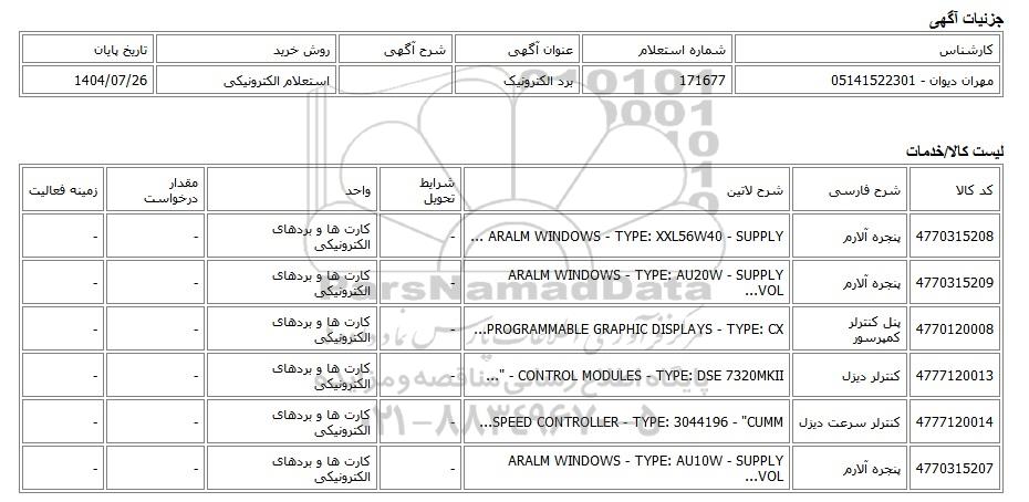 تلفن:5- 88349670 (021) فکس: 88349673 (021) Website: www.ParsNamadData.com E-mail: Info@ParsNamadData.com استعلام الکترونیکی برد الکترونیک