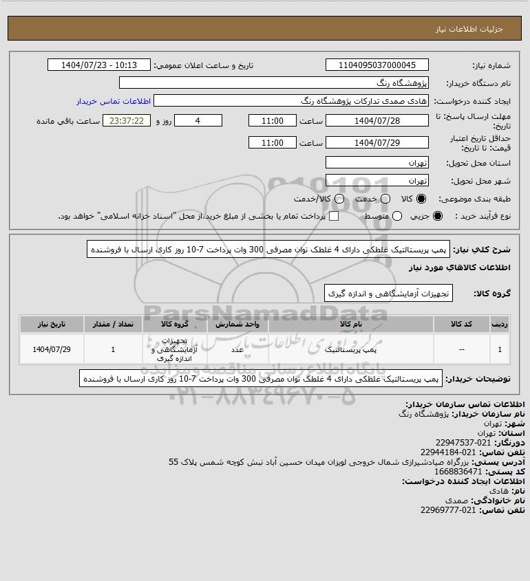 تلفن:5- 88349670 (021) فکس: 88349673 (021) Website: www.ParsNamadData.com E-mail: Info@ParsNamadData.com استعلام پمپ پریستالتیک غلطکی