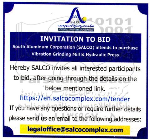 تلفن:5- 88349670 (021) فکس: 88349673 (021) Website: www.ParsNamadData.com E-mail: Info@ParsNamadData.com مناقصه intends to purchase Vibration Grinding Mill & Hydraulic Press ...
