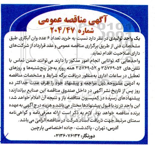 تلفن:5- 88349670 (021) فکس: 88349673 (021) Website: www.ParsNamadData.com E-mail: Info@ParsNamadData.com مناقصه خرید تعداد 6 عدد وان آبکاری