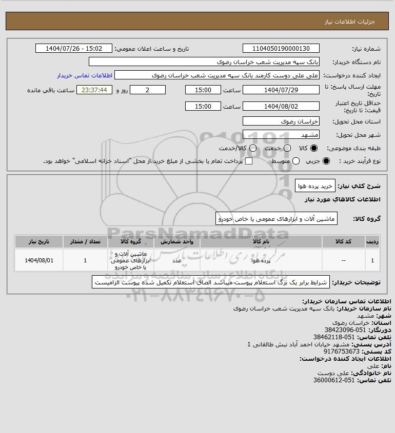 تلفن:5- 88349670 (021) فکس: 88349673 (021) Website: www.ParsNamadData.com E-mail: Info@ParsNamadData.com استعلام خرید پرده هوا