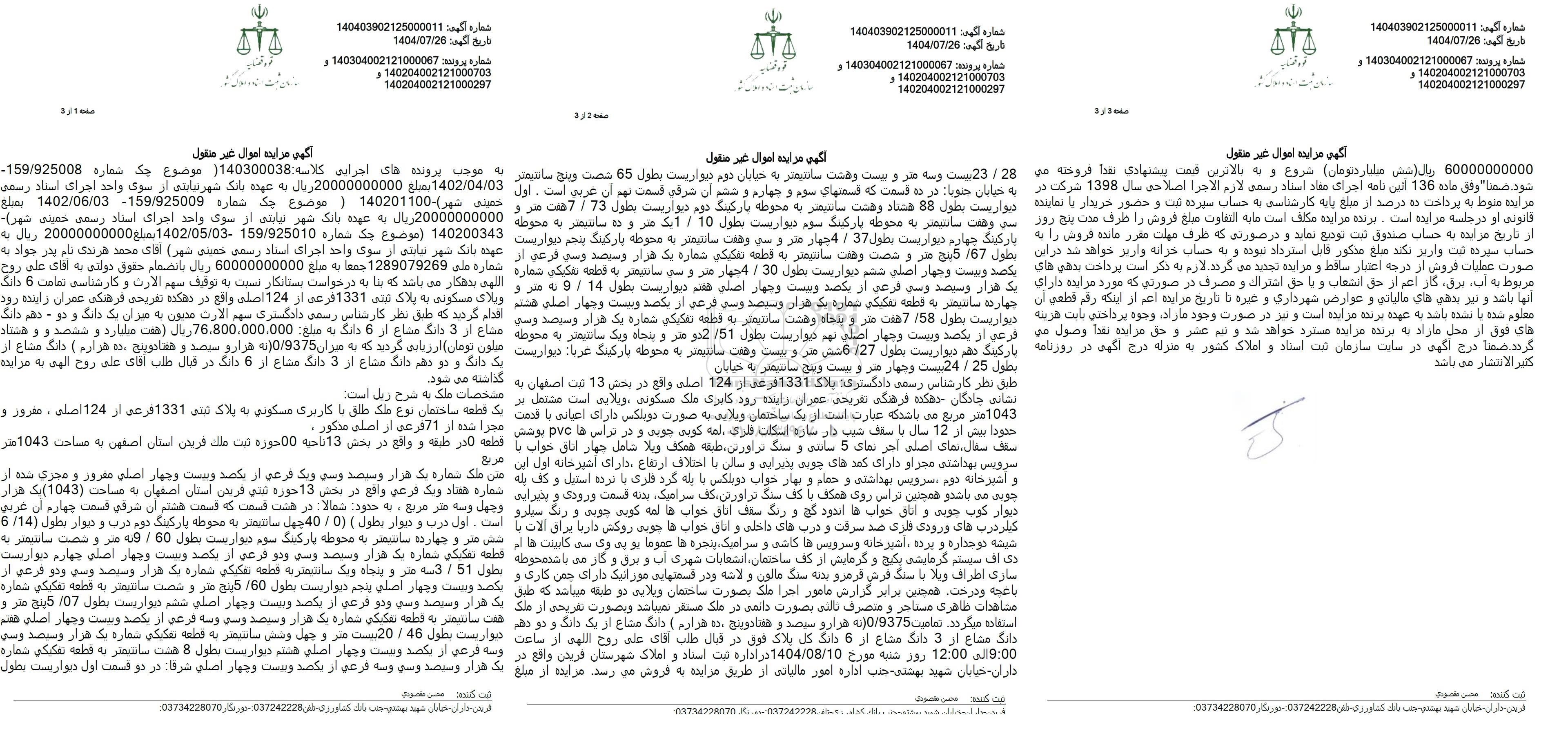 تلفن:5- 88349670 (021) فکس: 88349673 (021) Website: www.ParsNamadData.com E-mail: Info@ParsNamadData.com مزایده فروش یک قطعه ساختمان با کاربری مسکونی به پلاک ثبتی 1331 فرعی از 124 اصلی