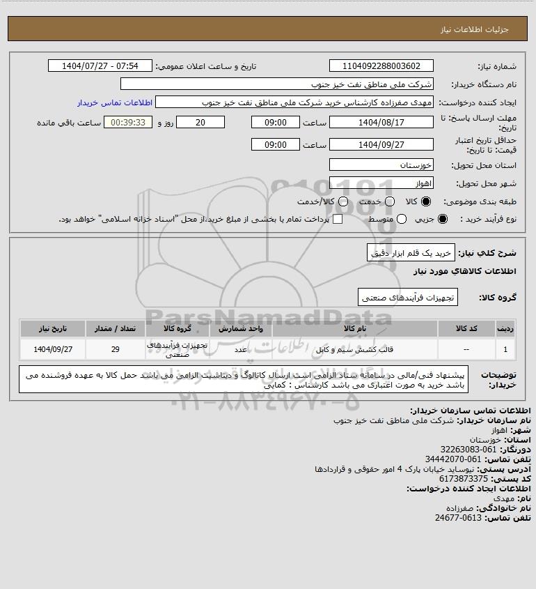 تلفن:5- 88349670 (021) فکس: 88349673 (021) Website: www.ParsNamadData.com E-mail: Info@ParsNamadData.com استعلام خرید یک قلم ابزار دقیق