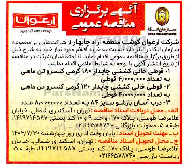 تلفن:5- 88349670 (021) فکس: 88349673 (021) Website: www.ParsNamadData.com E-mail: Info@ParsNamadData.com مناقصه خرید قوطی خالی کششی چاپدار 180 گرمی....