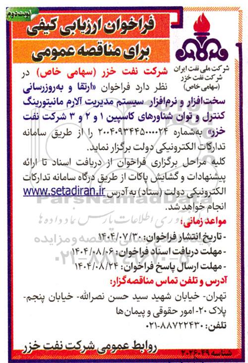 تلفن:5- 88349670 (021) فکس: 88349673 (021) Website: www.ParsNamadData.com E-mail: Info@ParsNamadData.com فراخوان ارزیابی کیفی ارتقا و به روزرسانی سخت افزار و نرم افزار سیستم مدیریت آلارم ...- نوبت دوم