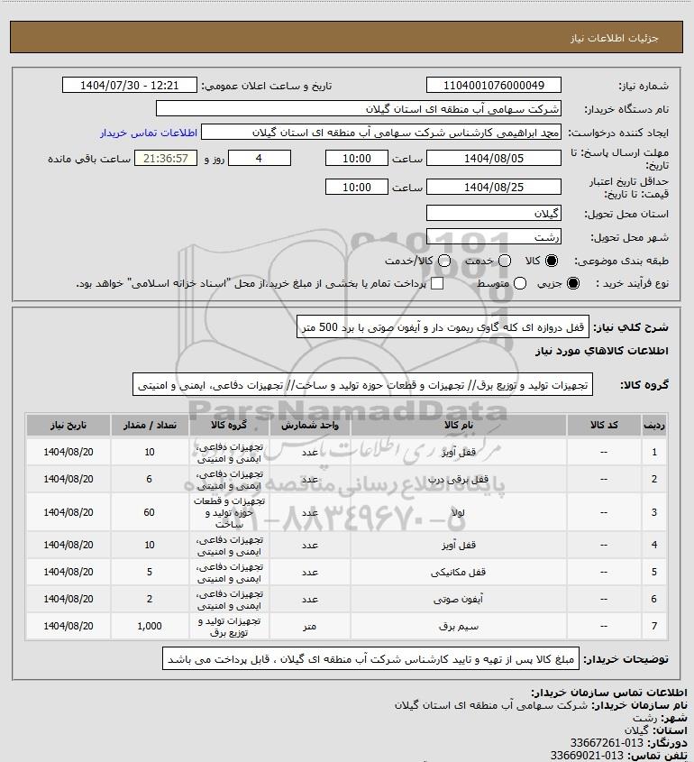 تلفن:5- 88349670 (021) فکس: 88349673 (021) Website: www.ParsNamadData.com E-mail: Info@ParsNamadData.com استعلام قفل دروازه ای کله گاوی ریموت دار و آیفون صوتی با برد 500 متر