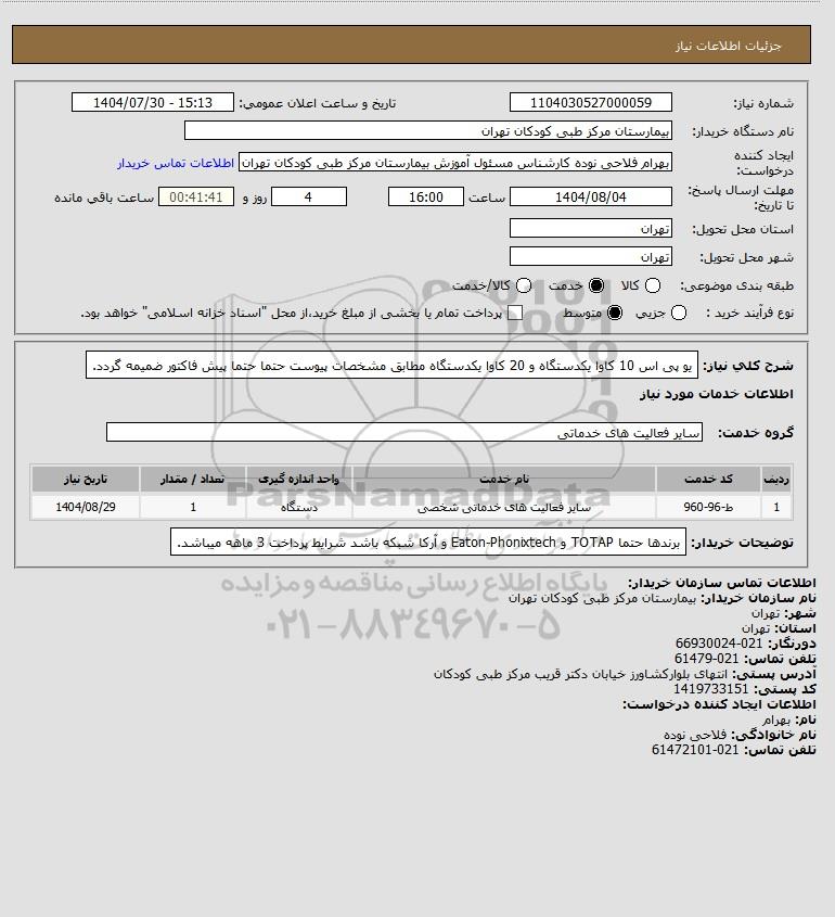 تلفن:5- 88349670 (021) فکس: 88349673 (021) Website: www.ParsNamadData.com E-mail: Info@ParsNamadData.com استعلام یو پی اس 10 کاوا یکدستگاه و 20 کاوا یکدستگاه مطابق مشخصات پیوست