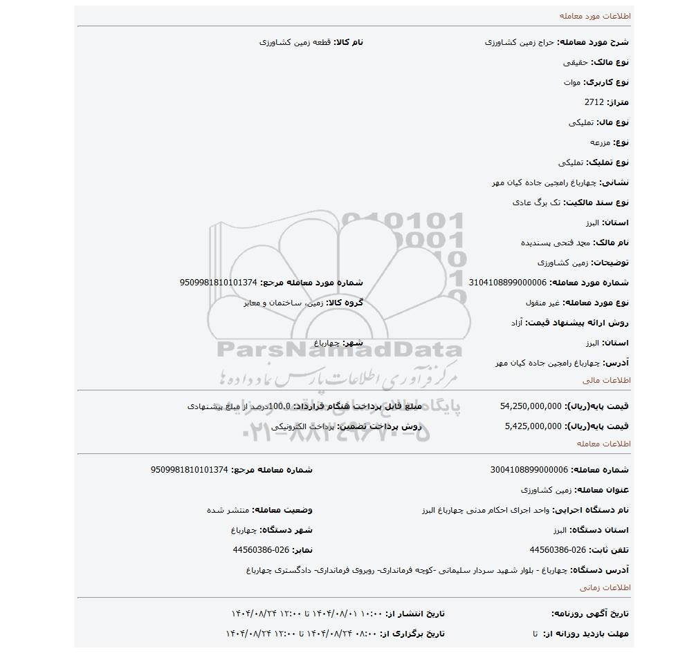 | عنوان آگهی: مزایده زمین کشاورزی |