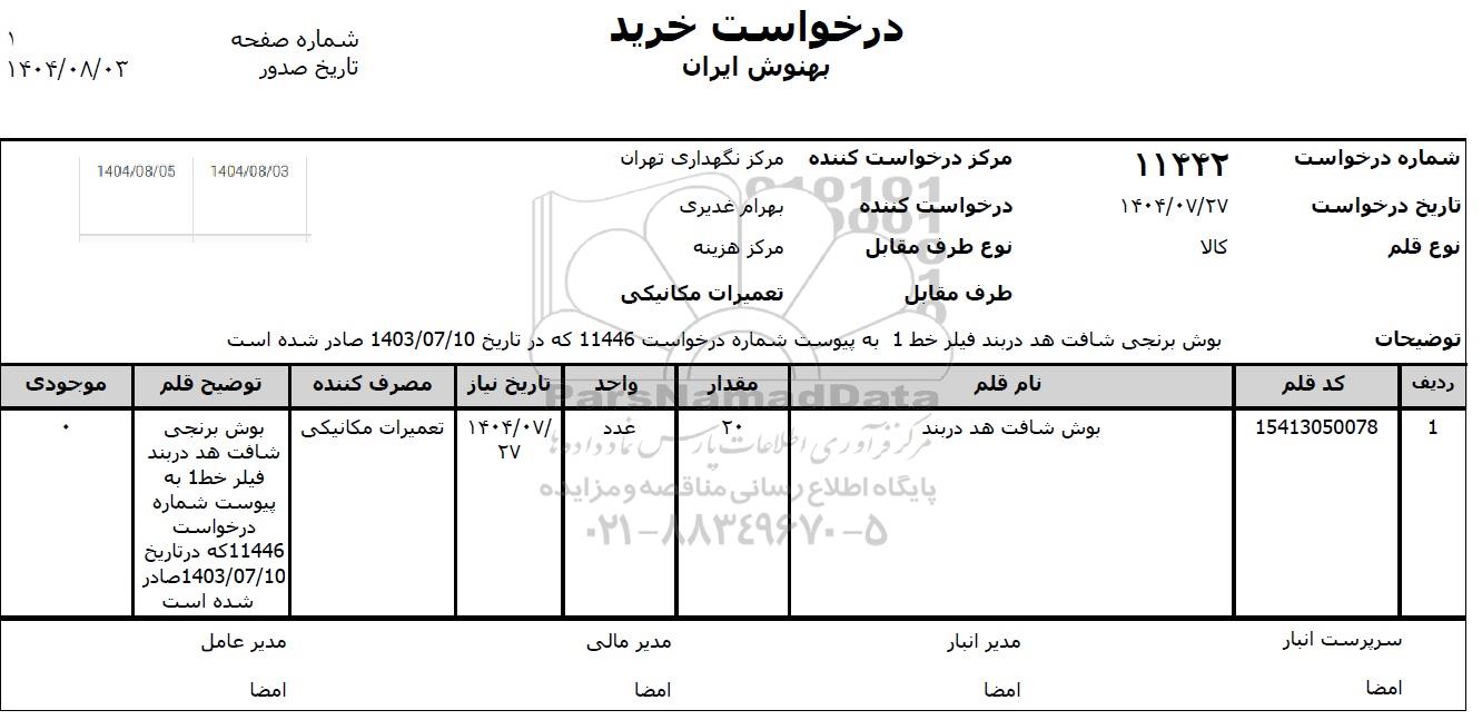 تلفن:5- 88349670 (021) فکس: 88349673 (021) Website: www.ParsNamadData.com E-mail: Info@ParsNamadData.com استعلام بوش شافت هد دربند