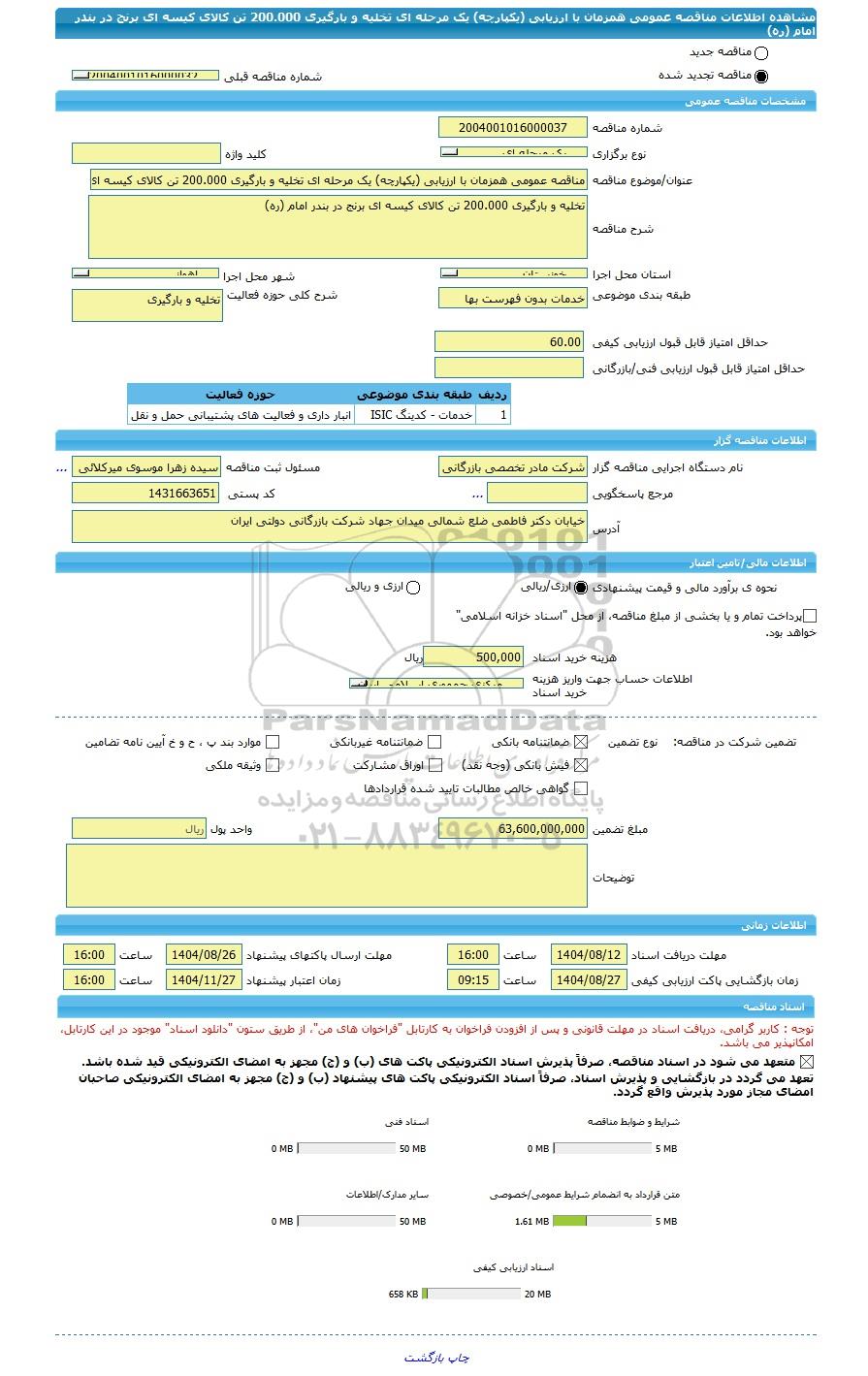 | | | | مبلغ تضمین | 63,600,000,000 | واحد پول | ریال | | توضیحات | |