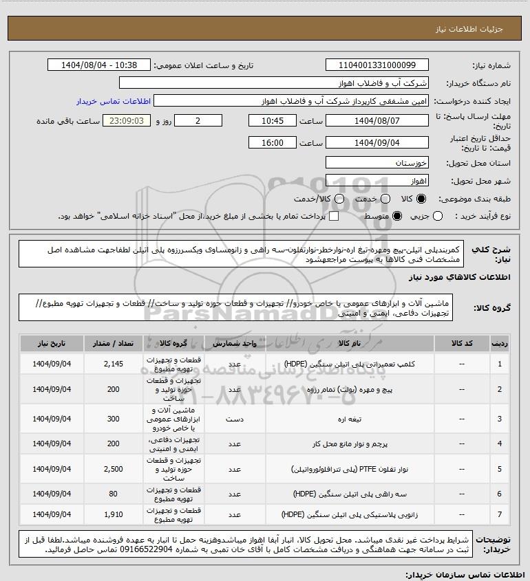 تلفن:5- 88349670 (021) فکس: 88349673 (021) Website: www.ParsNamadData.com E-mail: Info@ParsNamadData.com استعلام کمربندپلی اتیلن-پیچ ومهره-تیغ اره-نوارخطر-نوارتفلون-سه راهی و زانومساوی ویکسررزوه پلی اتیلن