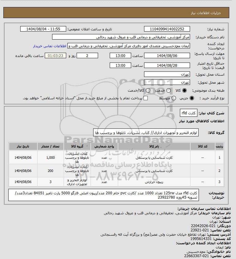 تلفن:5- 88349670 (021) فکس: 88349673 (021) Website: www.ParsNamadData.com E-mail: Info@ParsNamadData.com استعلام کارت rfid