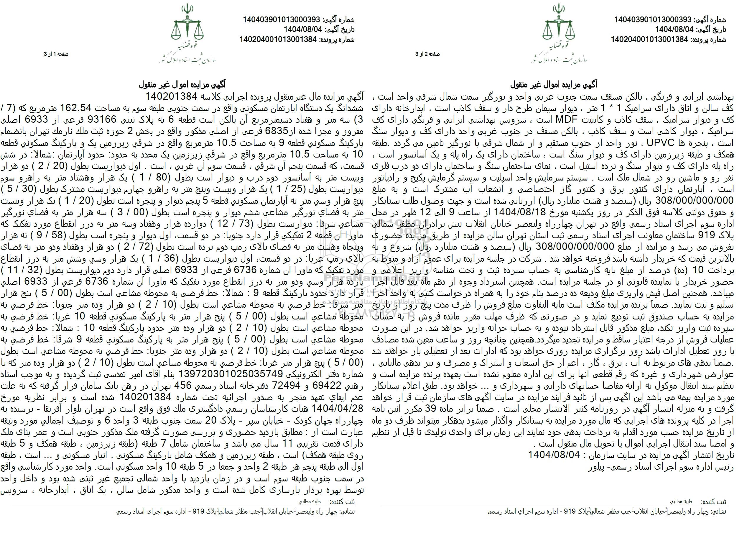 تلفن:5- 88349670 (021) فکس: 88349673 (021) Website: www.ParsNamadData.com E-mail: Info@ParsNamadData.com مزایده فروش ششدانگ یک دستگاه آپارتمان مسکونی