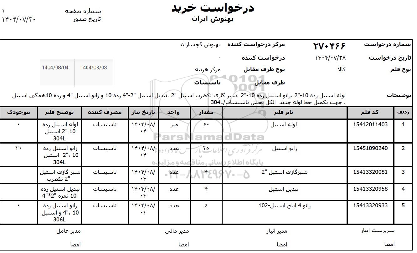 تلفن:5- 88349670 (021) فکس: 88349673 (021) Website: www.ParsNamadData.com E-mail: Info@ParsNamadData.com استعلام لوله استیل ....
