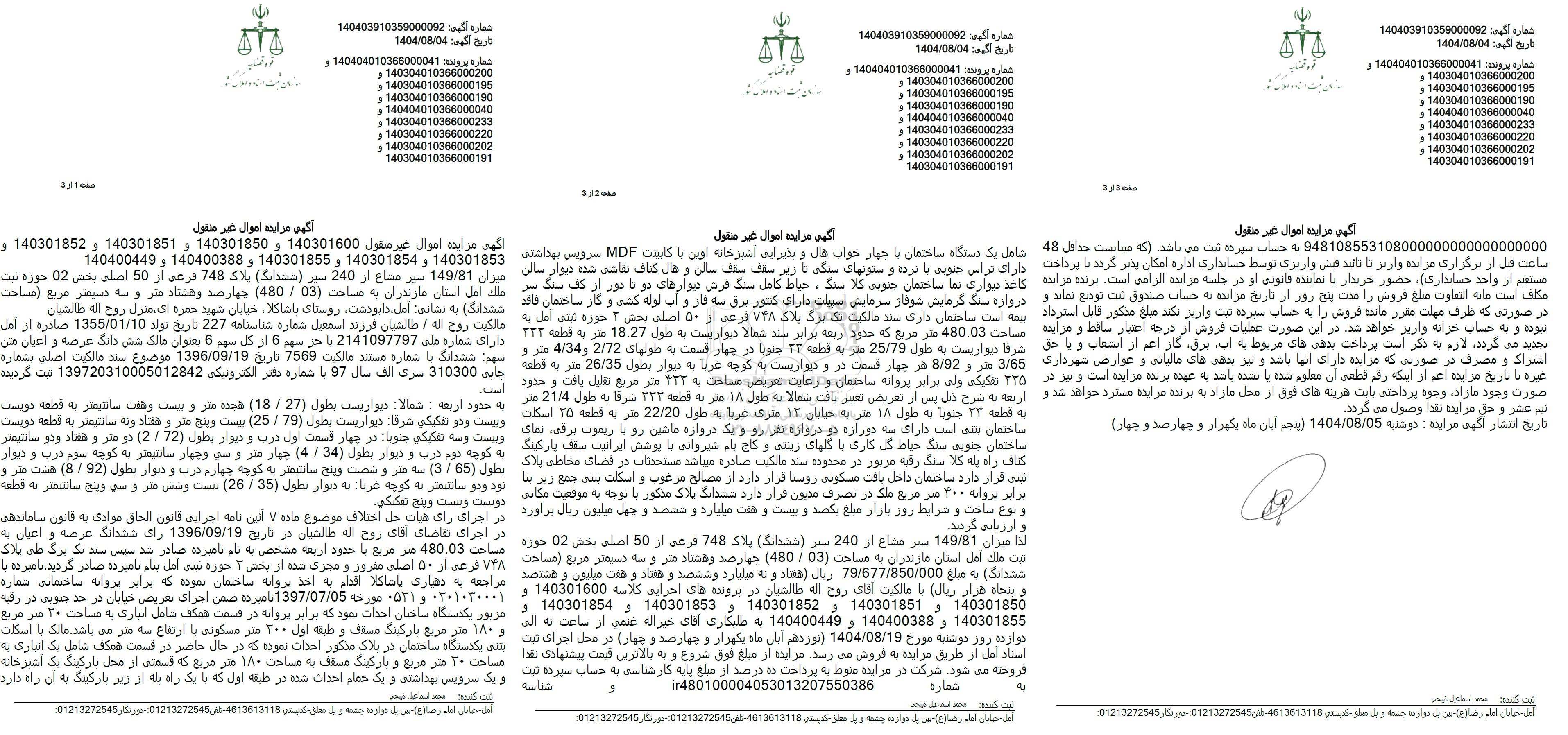 تلفن:5- 88349670 (021) فکس: 88349673 (021) Website: www.ParsNamadData.com E-mail: Info@ParsNamadData.com میزان 149.81 سیر مشاع از 240 سیر ملک به مساحت 480.03 مترمربع
