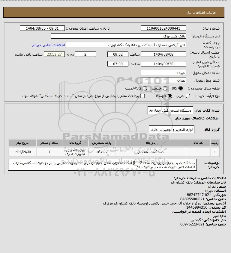 تلفن:5- 88349670 (021) فکس: 88349673 (021) Website: www.ParsNamadData.com E-mail: Info@ParsNamadData.com استعلام دستگاه تسمه کش چهار نخ