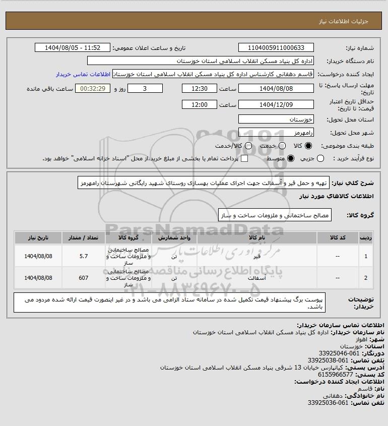 نام سازمان خریدار: اداره کل بنیاد مسکن انقلاب اسلامی استان خوزستان