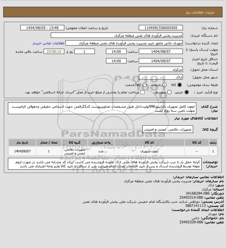 تلفن:5- 88349670 (021) فکس: 88349673 (021) Website: www.ParsNamadData.com E-mail: Info@ParsNamadData.com استعلام ایفون کامل تصویری بامانیتور996تولیدداخل طبق مشخصات تصاویرپیوست