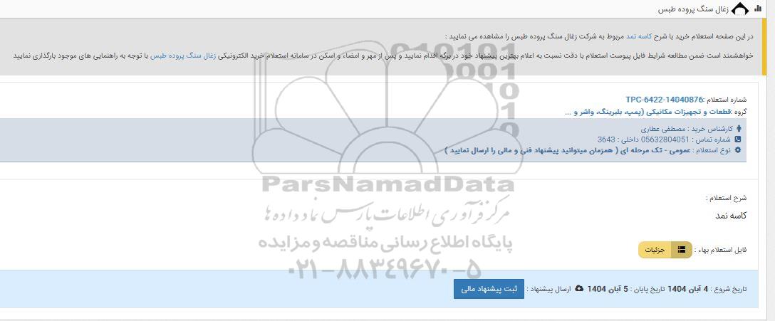 تلفن:5- 88349670 (021) فکس: 88349673 (021) Website: www.ParsNamadData.com E-mail: Info@ParsNamadData.com استعلام خرید با شرح کاسه نمد