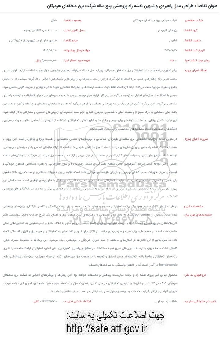 عنوان تقاضا : طراحی مدل راهبردی و تدوین نقشه راه پژوهشی پنج ساله شرکت برق منطقه ای هرمزگان