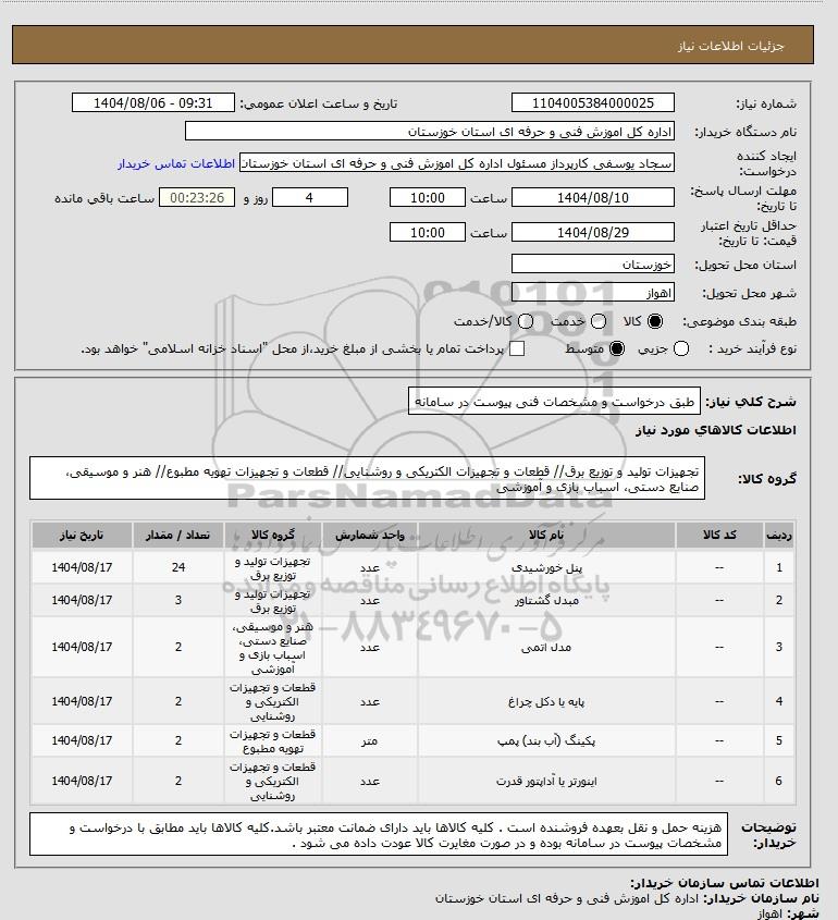 تلفن:5- 88349670 (021) فکس: 88349673 (021) Website: www.ParsNamadData.com E-mail: Info@ParsNamadData.com استعلام طبق درخواست و مشخصات فنی پیوست در سامانه