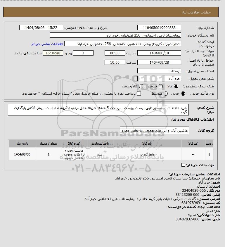 تلفن:5- 88349670 (021) فکس: 88349673 (021) Website: www.ParsNamadData.com E-mail: Info@ParsNamadData.com استعلام خرید متعلقات آسانسور طبق لیست پیوست - پرداخت 5 ماهه- هزینه حمل برعهده فروشنده است -پیش فاکتور بارگذاری گردد