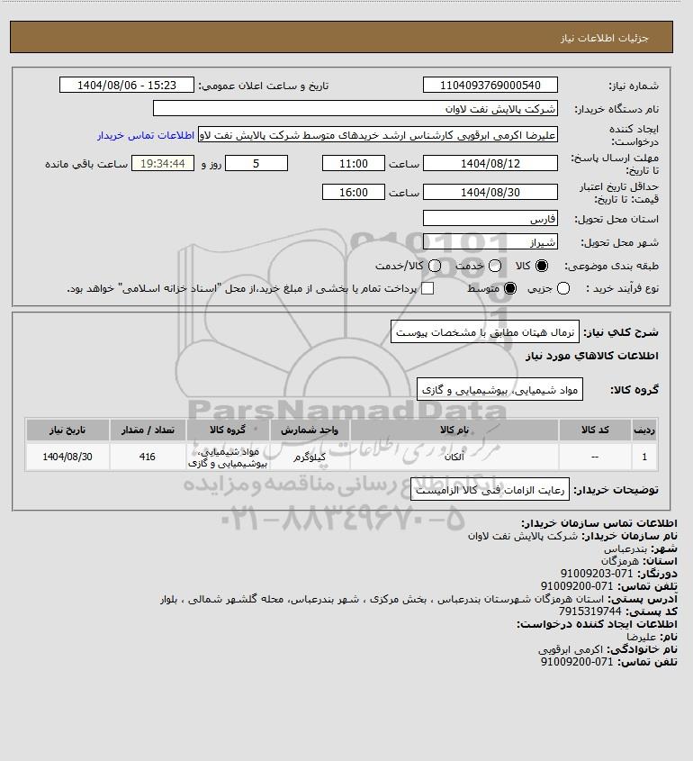 تلفن:5- 88349670 (021) فکس: 88349673 (021) Website: www.ParsNamadData.com E-mail: Info@ParsNamadData.com استعلام نرمال هپتان مطابق با مشخصات پیوست