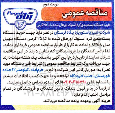 تلفن:5- 88349670 (021) فکس: 88349673 (021) Website: www.ParsNamadData.com E-mail: Info@ParsNamadData.com مناقصه عمومی خرید دستگاه بسته بندی کره استوک اورهال شده 10 تا 25 گرمی- نوبت دوم