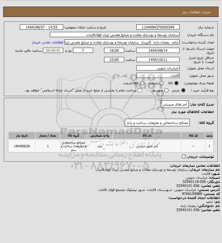 تلفن:5- 88349670 (021) فکس: 88349673 (021) Website: www.ParsNamadData.com E-mail: Info@ParsNamadData.com استعلام آجر های منیزیتی