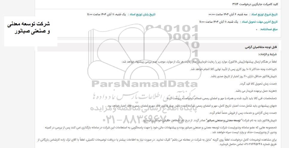 آگهی گزار شرکت توسعه معدنی و صنعتی صبانور