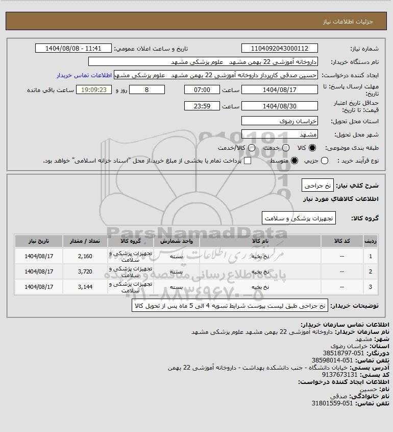 تلفن:5- 88349670 (021) فکس: 88349673 (021) Website: www.ParsNamadData.com E-mail: Info@ParsNamadData.com استعلام نخ جراحی