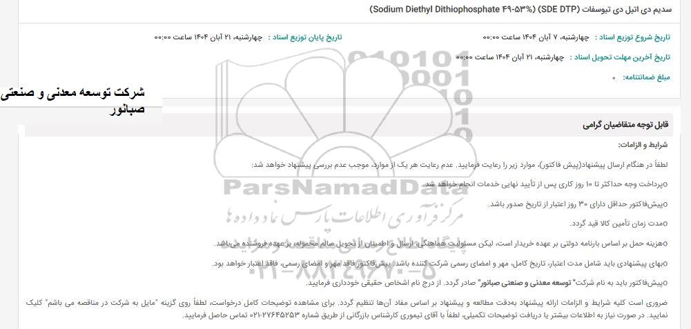 | عنوان آگهی: استعلام سدیم دی اتیل دی تیوسفات |