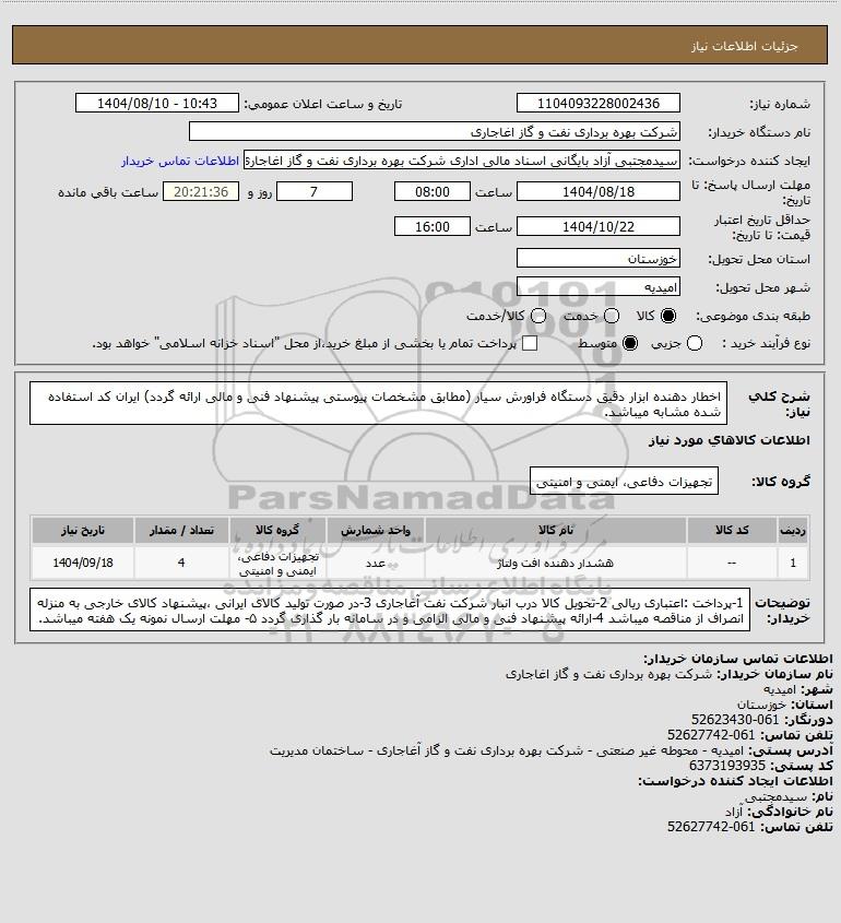 تلفن:5- 88349670 (021) فکس: 88349673 (021) Website: www.ParsNamadData.com E-mail: Info@ParsNamadData.com استعلام اخطار دهنده ابزار دقیق دستگاه فراورش سیار