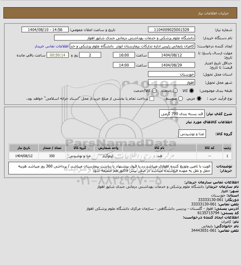 تلفن:5- 88349670 (021) فکس: 88349673 (021) Website: www.ParsNamadData.com E-mail: Info@ParsNamadData.com استعلام قند بسته بندی 700 گرمی