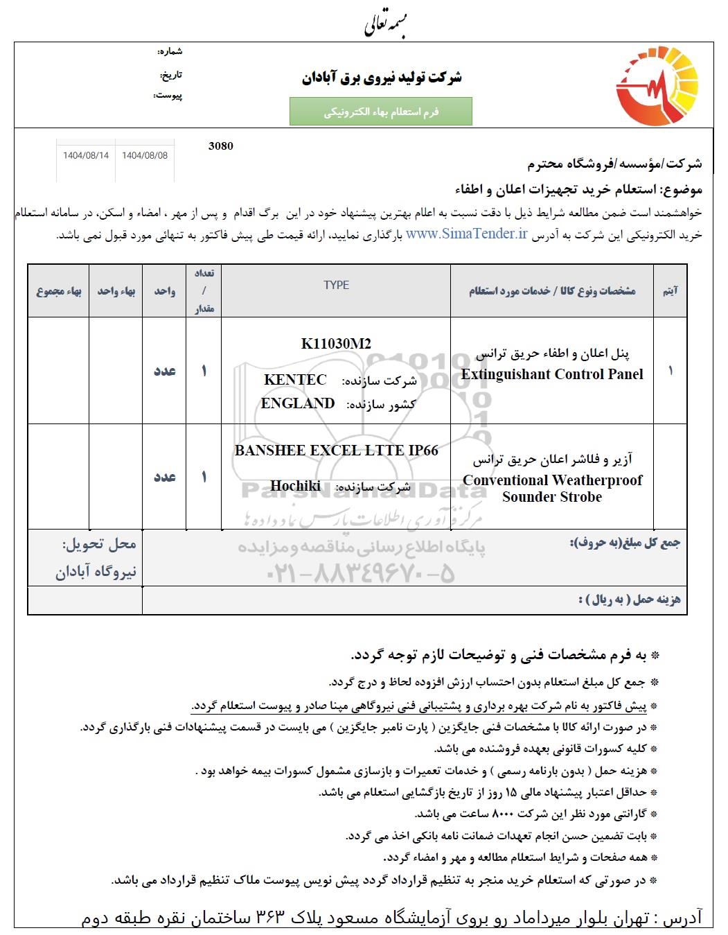تلفن:5- 88349670 (021) فکس: 88349673 (021) Website: www.ParsNamadData.com E-mail: Info@ParsNamadData.com استعلام خرید تجهیزات اعلان و اطفاء