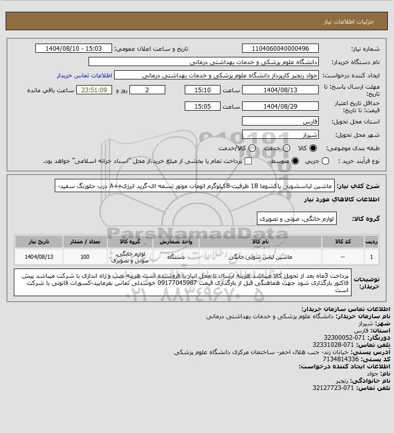 تلفن:5- 88349670 (021) فکس: 88349673 (021) Website: www.ParsNamadData.com E-mail: Info@ParsNamadData.com استعلام ماشین لباسشویی پاکشوما 18 ظرفیت-8کیلوگرم اتومات موتور تسمه ای-گرید انرژی++A درب جلورنگ سفید-