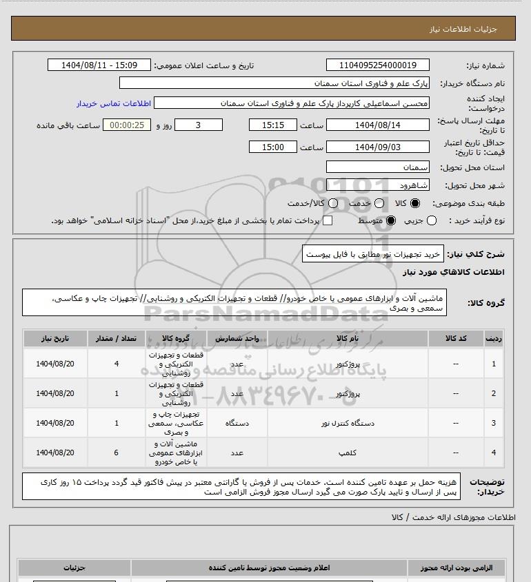 تلفن:5- 88349670 (021) فکس: 88349673 (021) Website: www.ParsNamadData.com E-mail: Info@ParsNamadData.com استعلام خرید تجهیزات نور مطابق با فایل پیوست