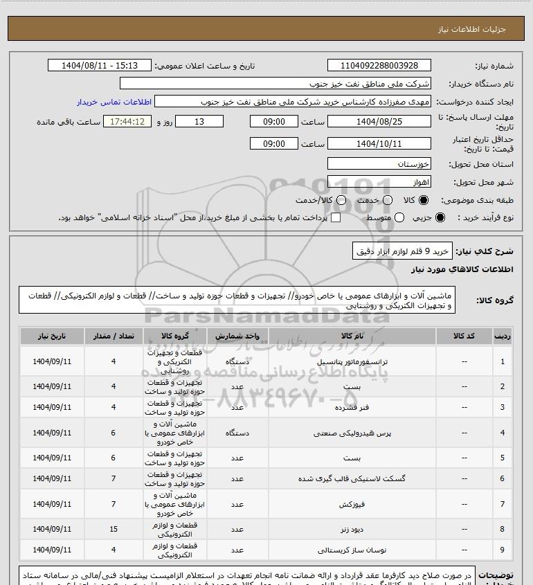 تلفن:5- 88349670 (021) فکس: 88349673 (021) Website: www.ParsNamadData.com E-mail: Info@ParsNamadData.com استعلام خرید 9 قلم لوازم ابزار دقیق