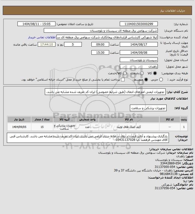 تلفن:5- 88349670 (021) فکس: 88349673 (021) Website: www.ParsNamadData.com E-mail: Info@ParsNamadData.com استعلام تجهیزات ایمنی امورهای انتقال (طبق شرایط خصوصی) ایران کد تعریف شده مشابه می باشد.