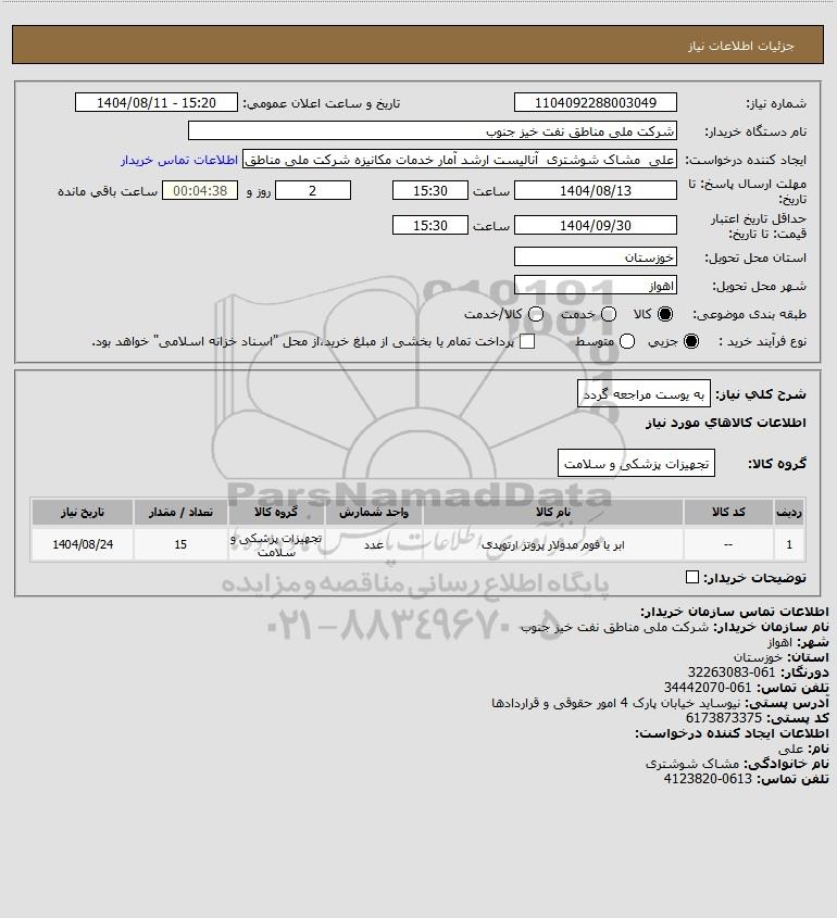 نام دستگاه خریدار:شرکت ملی مناطق نفت خیز جنوب